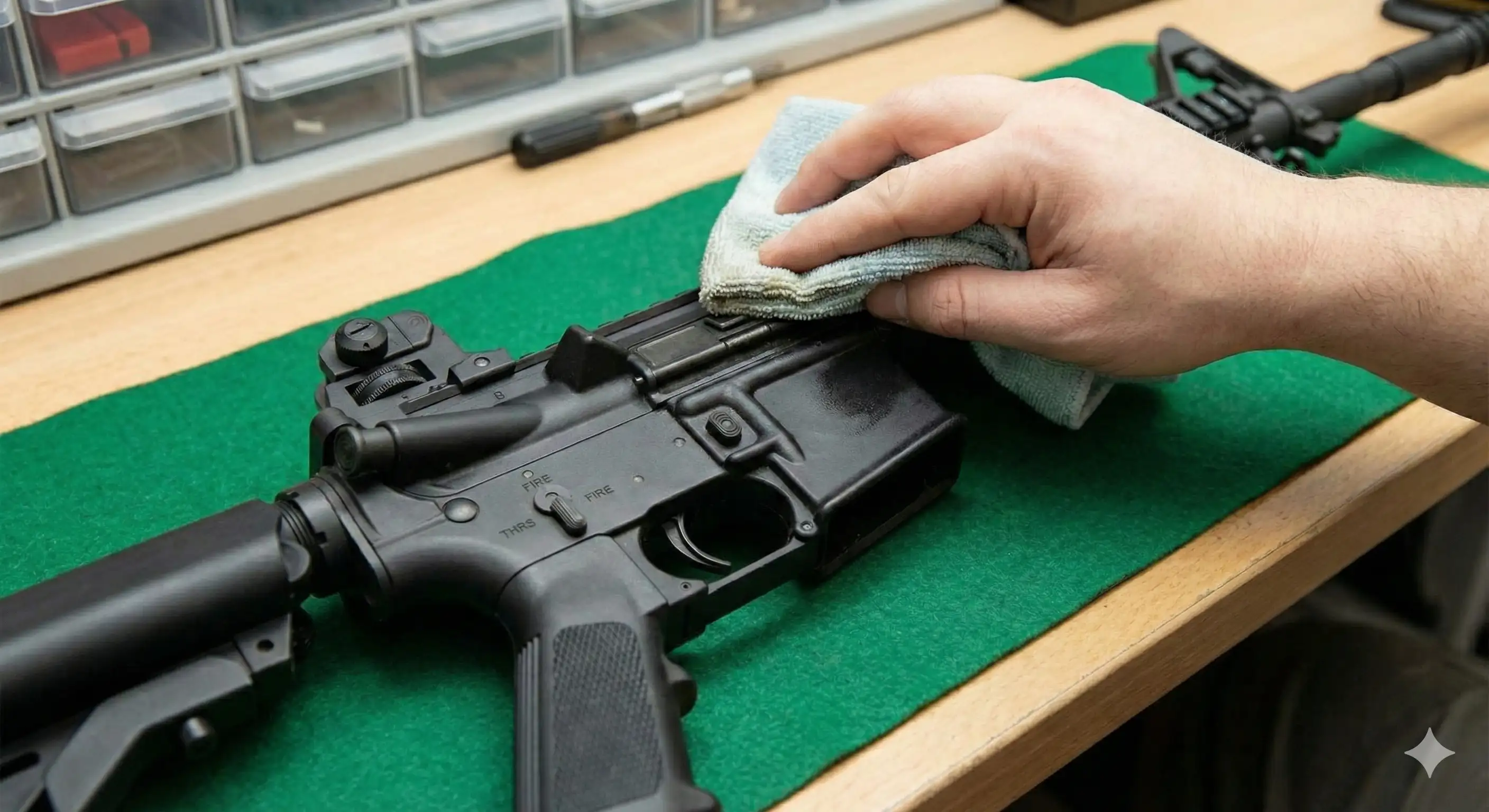 Menos é Mais: Na lubrificação, não "afogues" a arma em óleo. O excesso de óleo atrai sujidade, o que acelera o desgaste.