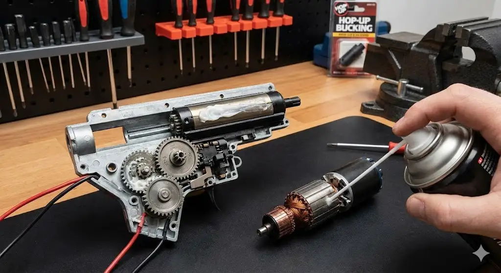 Troca de Consumíveis: Substituir a borracha do Hop-Up (mesmo que pareça boa, a borracha perde elasticidade com o tempo).