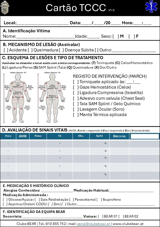Ele é um registro médico simplificado, resistente e padronizado, projetado para ser preenchido sob fogo ou em condições extremas. O objetivo é garantir a continuidade do cuidado: como o ferido passará por vários níveis de evacuação, o médico que o receber lá na frente precisa saber exatamente o que já foi feito.