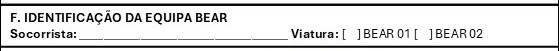 Identificação do Socorrista e da viatura a que pertence a mala de primeiros socorros utilizada.