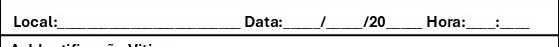 Preencher com a informação do Local do Acidente/vitima ___________________________________ Local: Morada ou Coordenadas ___________________________________ Data: Data do Acidente ___________________________________ Hora: Hora que encontrou a vitima