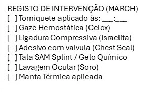 O cartão segue a lógica do protocolo MARCH PAWS, priorizando o que mata mais rápido: