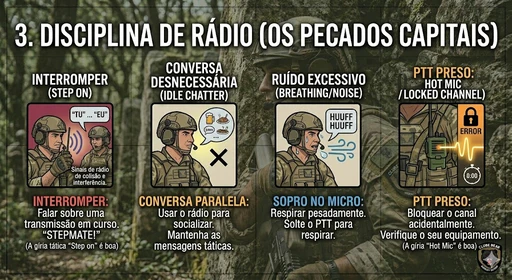 A Disciplina é Silenciosa: Um bom operador de rádio sabe quando calar a rede para que a informação crítica possa passar. O silêncio tático é tão importante quanto uma mensagem clara.
