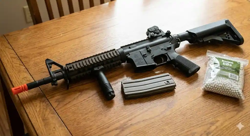 São dispositivos que disparam BBs, réplicas de armas reais à escala 1:1.