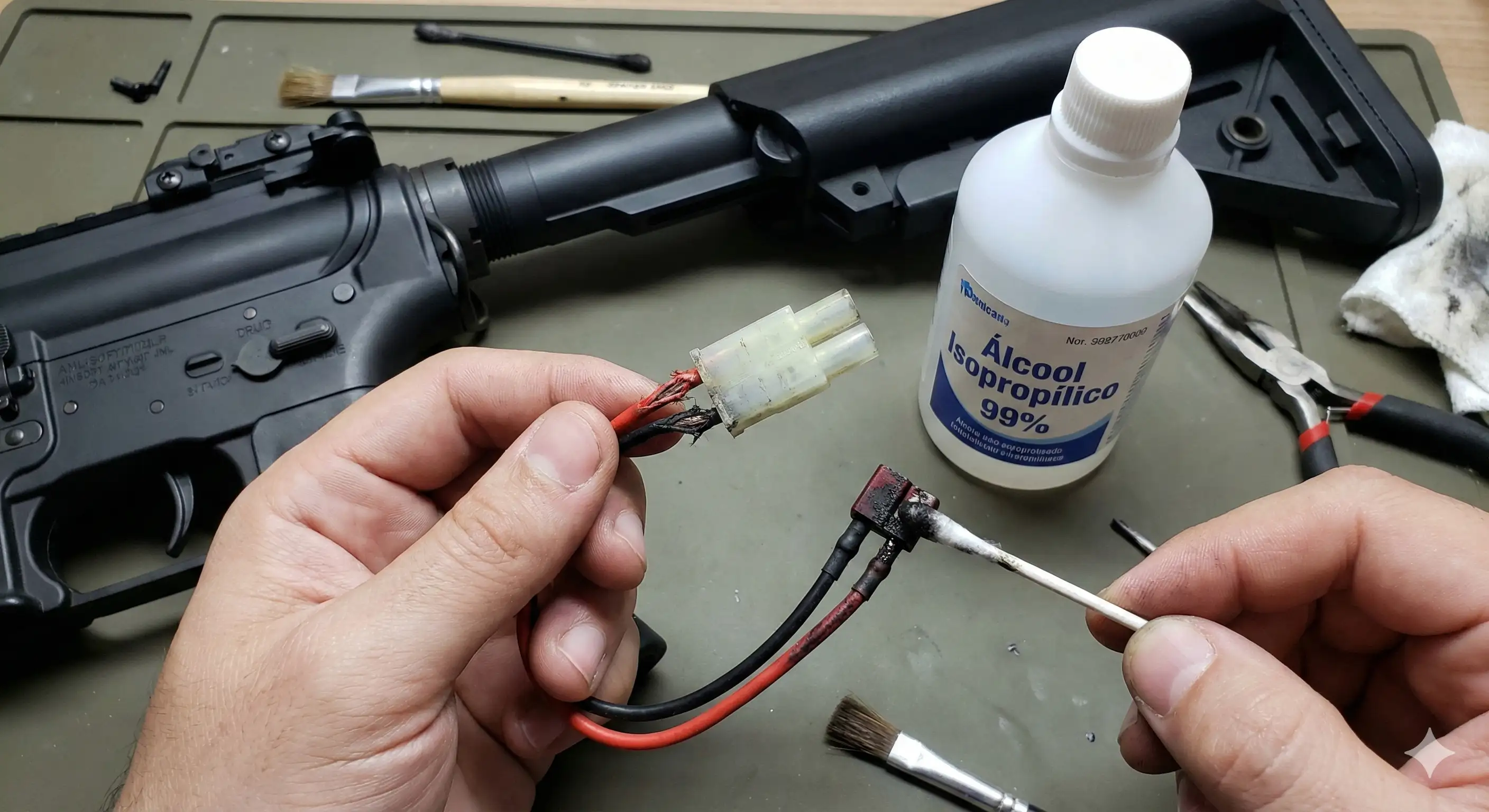 Não utilizes produtos domésticos (como o WD-40 comum ou óleos de cozinha). O Airsoft exige química compatível com polímeros e O-rings.