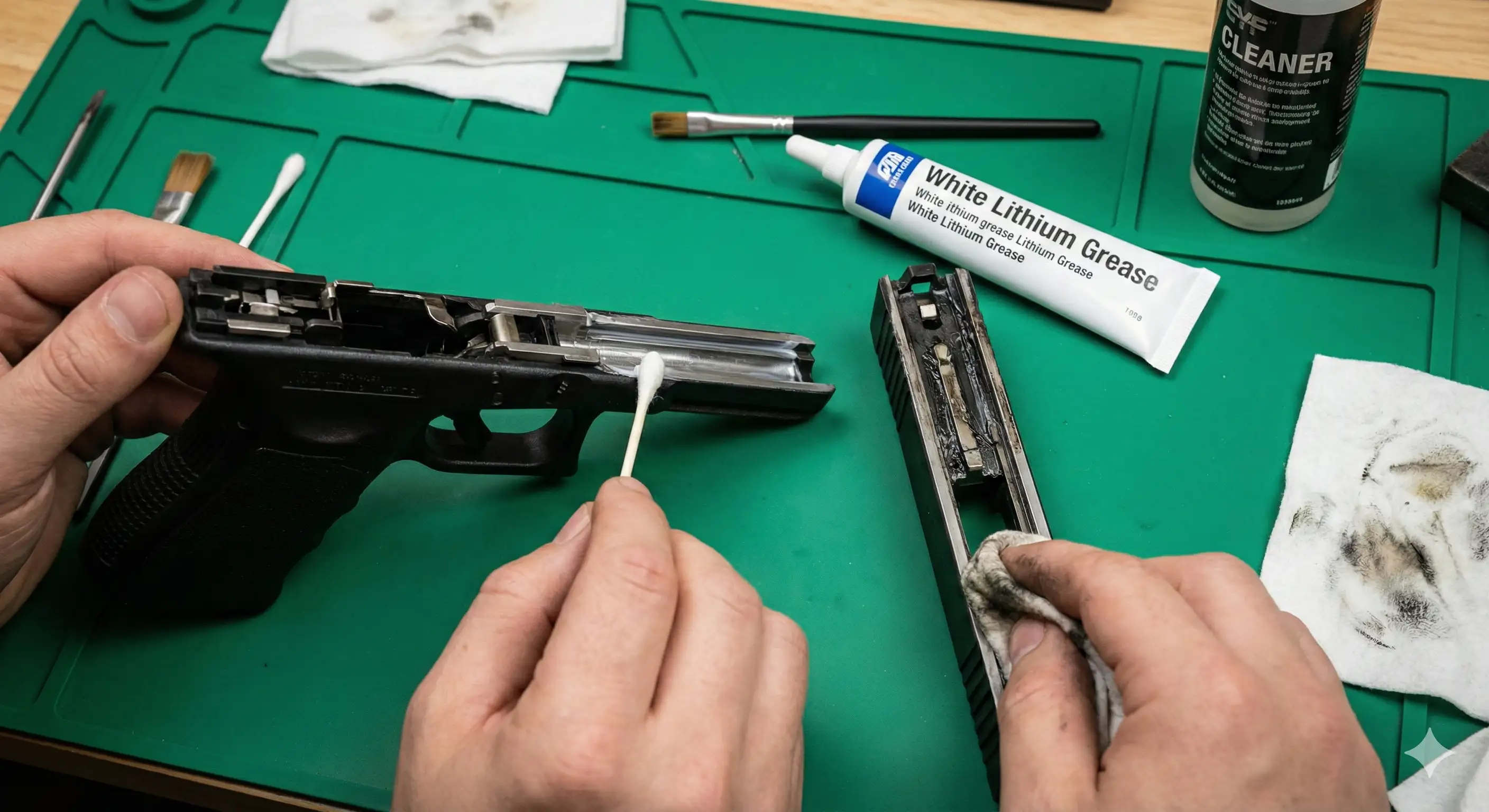 Menos é Mais: Na lubrificação, não "afogues" a arma em óleo. O excesso de óleo atrai sujidade, o que acelera o desgaste.