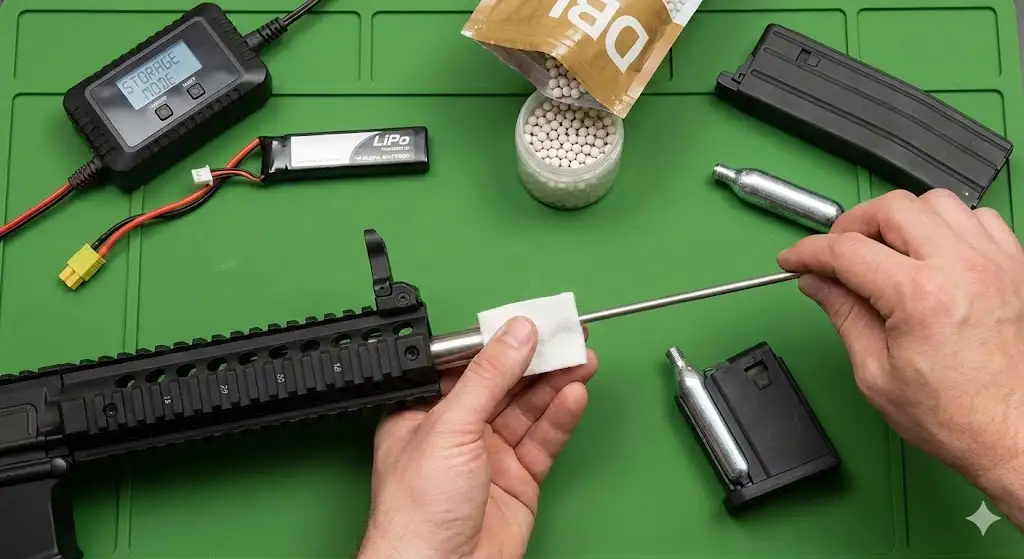 Gás (GBB): Deixa sempre um "cheiro" de Green Gas lá dentro para manter os vedantes hidratados.