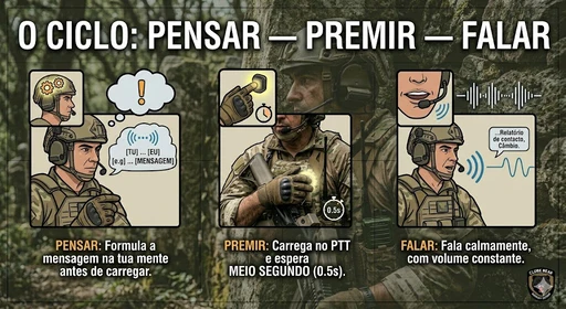 Dica de Veterano: Se estiveres sob fogo e o teu coração estiver a mil, respira fundo uma vez antes de carregar no PTT. O pânico no rádio contagia a equipa; a calma no rádio estabiliza-a.