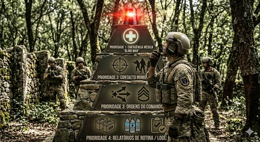 Nota para o Recruta (R): Se o teu rádio falhar, o teu novo objetivo principal é não perder de vista o teu Sargento. A comunicação visual substitui a rádio até a falha ser resolvida.