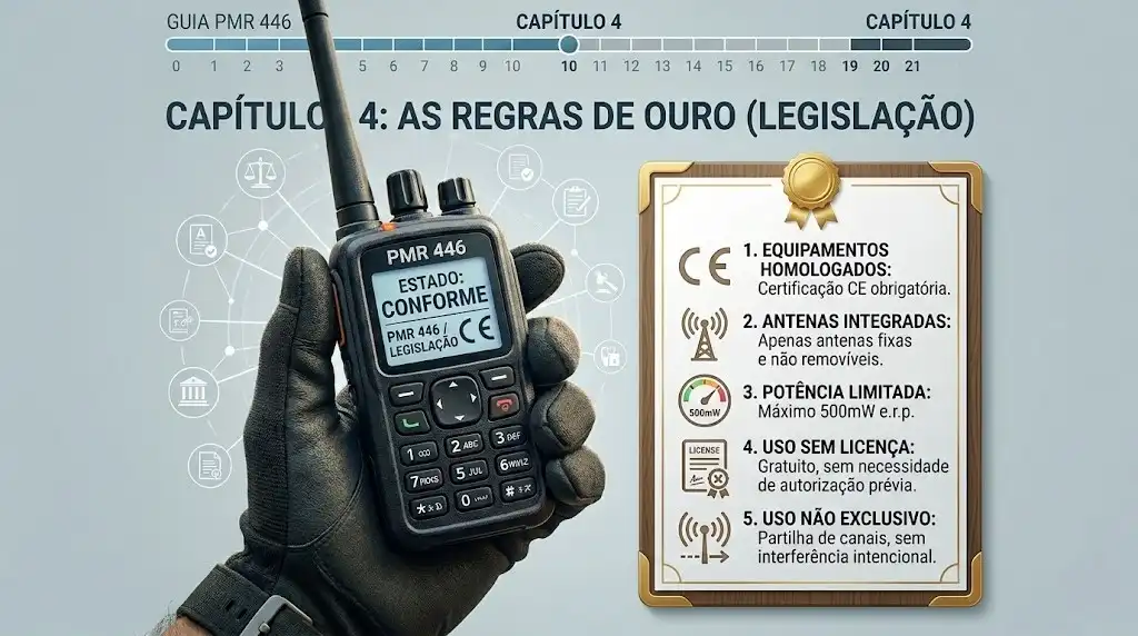 O PMR 446 é um serviço de uso livre, mas isso não significa que seja um "vale-tudo". Para que o espectro se mantenha organizado e funcional para todos, existem cinco regras de ouro que o teu equipamento e a tua conduta devem respeitar.
